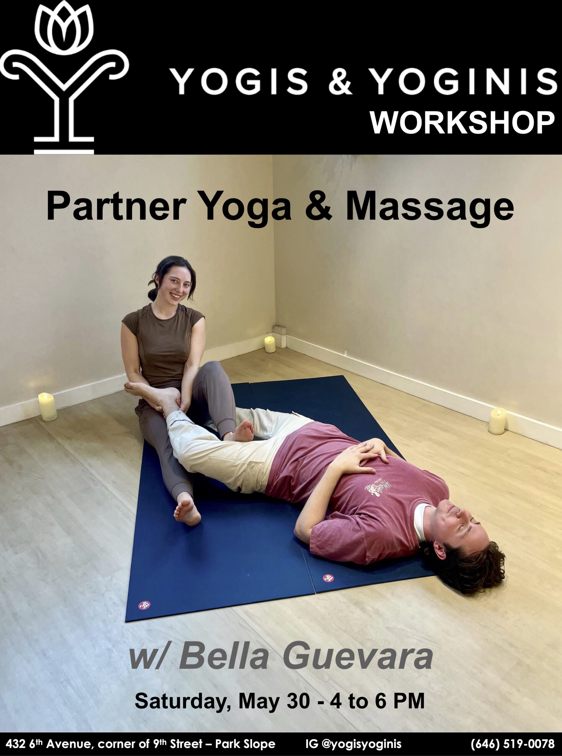 A grounding, connective practice for pairs; friends, family, or partners. We will warm up with a yoga flow- using the support, touch and connection of our partners hands and bodies as we move. After exploring new layers of verbal and non-verbal communication, we will soften into bliss with massage. You will be guided by a professional massage therapist on techniques from Thai Bodywork and Swedish Massage- through careful and simple instruction, you will both give and receive a full body massage. The practice ends in a restorative Savasana.
